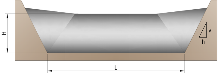 • Maximum overflow depth (overtopping) when rubber dam is fully inflated