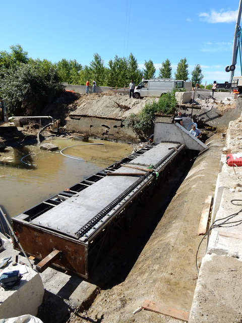 Fig.1: The gate assembly being lifted into the river at the Caffarella plant, Italy.